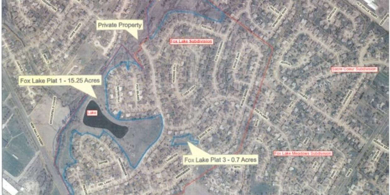 We are located on the Northwest corner of New Halls Ferry Road and Vaile/Patterson Road. We have 410 houses that are in the Fox Lake and Fox Lake Estates Subdivisions that comprises the Fox Lake Subdivision. We have approximately 24.65 acres of common ground. The area with the lake is approximately 15.25 acres with a 3 acre lake that has a fountain. There is also a large playground set and a swing set. We also have a ball diamond and pavilion with a barbecue pit that can be reserved by the residents. Our streets are lighted at night for safety and our open areas are regularly maintained.